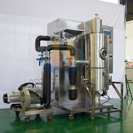 噴霧干燥機(jī)有多種類型。其中,實(shí)驗(yàn)室小型噴霧干燥機(jī)及其主要適用于大學(xué)、研究所和食品醫(yī)藥化工企業(yè)實(shí)驗(yàn)室生產(chǎn)微量顆粒粉末,對乳液、懸浮液等所有溶液具有廣譜適用性,實(shí)驗(yàn)室小型噴霧干燥機(jī)在真空環(huán)境中干燥,實(shí)現(xiàn)真...